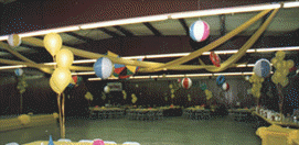 Floral Hall is a multi purpose building which measures 60'x140'. It has both heat and air conditioning; along with a kitchen and both men's and women's restrooms and a small storage room. The kitchen area has a refrigerator and a stove along with a sink. When renting Floral Hall you will also have use of the tables and chairs along with a stage area. There are approximately 80 8' white plastic tables and 300 gray metal folding chairs.